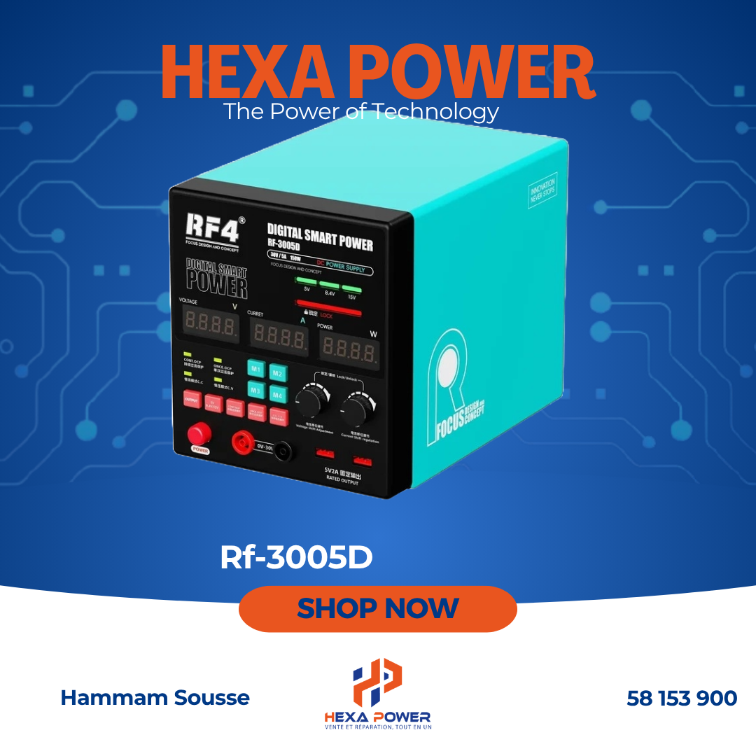 Boostez vos réparations électroniques avec le RF4 RF-3005D, une alimentation de laboratoire fiable, précise et polyvalente. Conçue pour les professionnels comme pour les passionnés, elle offre une performance stable et sécurisée pour tous vos projets techniques.